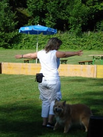 Tuvra und ich tanzten zur Musik "The last Unicorn". Ich glaube dieses Stück passt ganz gut zu ihrer feinen Art. Glücklicherweise hatte es am Morgen noch Schatten und Tuvra hat prima mitgemacht, bravo meine Süsse!!