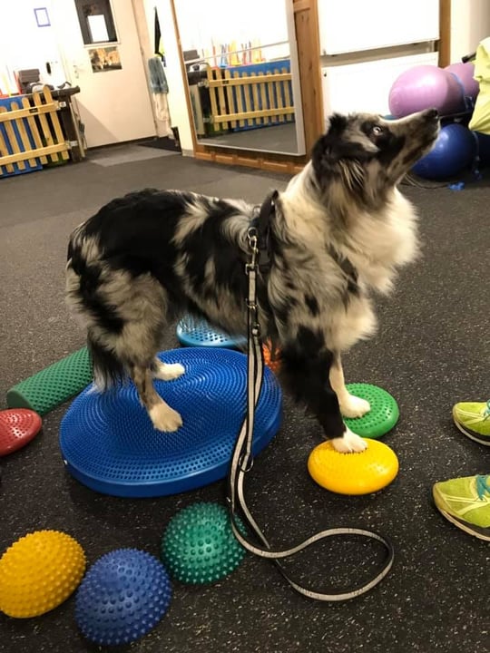 So stürmisch wie er manchmal auch sein kann, bei den Propriozeptionsübungen oder Balancesachen ist er sehr konzentriert!