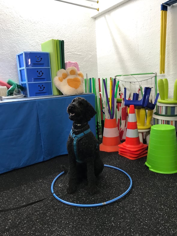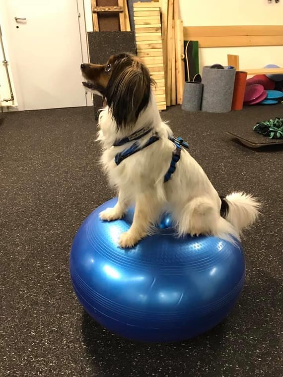 Daher sind viele Übungen noch neu für ihn, aber er macht ganz toll mit und verbessert dadurch seine Koordination und fördert den Muskelerhalt.