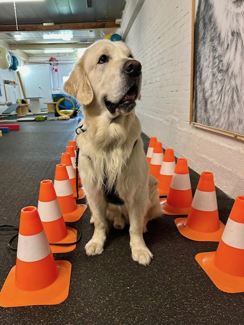 Der noch junge Golden Retriever-Rüde ist mit Frauchen im Happy-Mix Kurs.