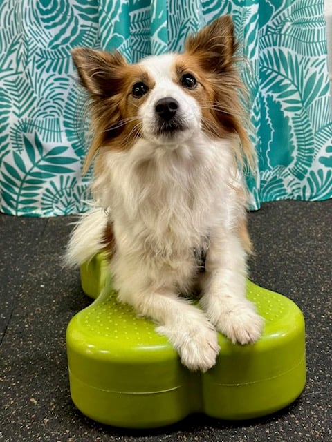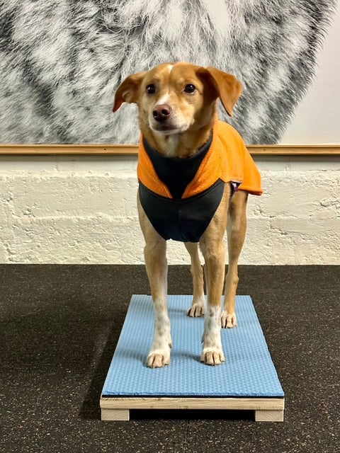 Suki, eine Chinese Crested Hündin ist noch relativ neu im Happy-Mix dabei, aber sie hat schnell einmal am Propriozeptions-Parcours