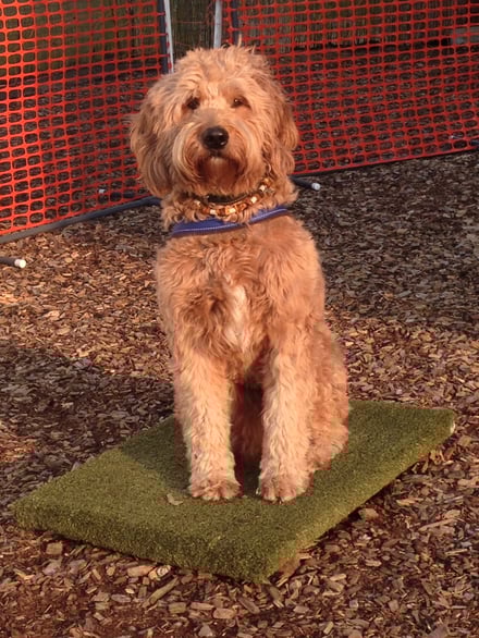 Die Labradoodle-Hündin ist gut 2 Jahre alt und kommt mit Frauchen ins Happy-Mix.