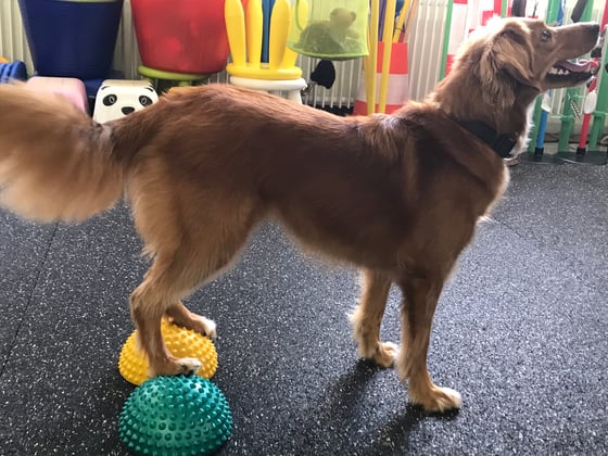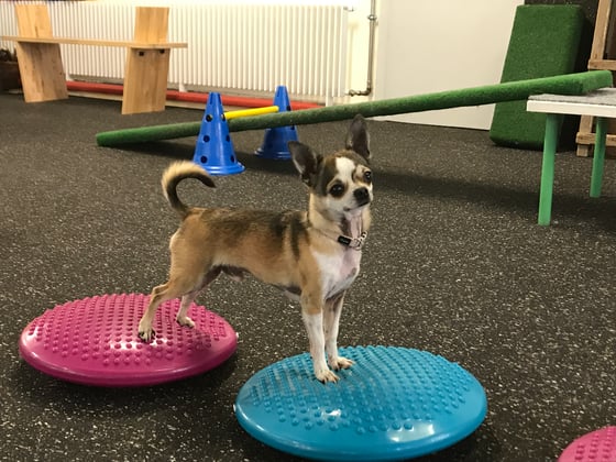 Winnie ist für alles zu haben, sie lernt gerne Tricks und bei den Balance- und Koordinationsübungen ist sie hoch konzentriert und arbeitet sehr genau!