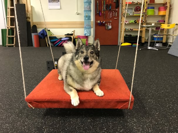 Er hat früher Agility gemacht, ist aber an allem interessiert. Balancesachen findet er toll und so war auch die Schaukel ganz easy.....