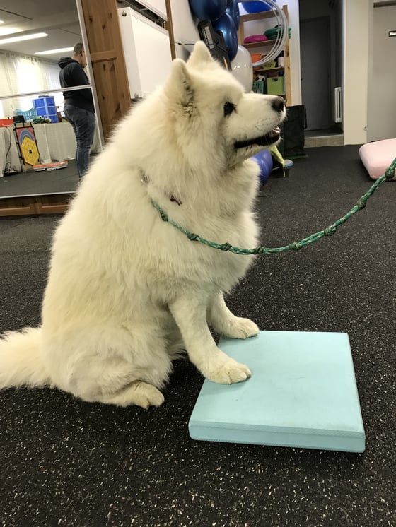Siri ist eine ältere Samoyeden-Dame und hat mit Frauchen zuerst das Reha-Mix Angebot in Anspruch genommen und besucht nun alle