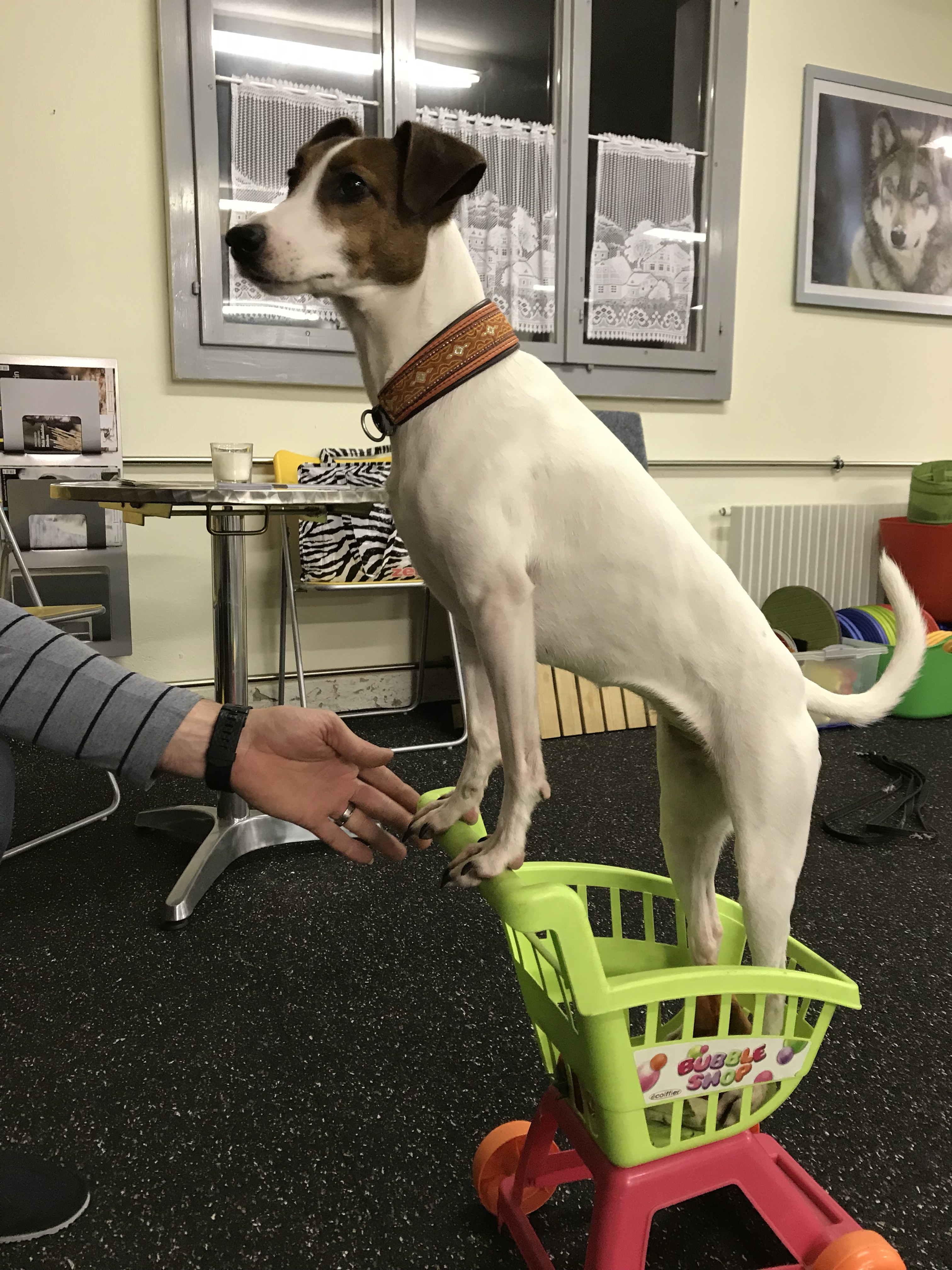 Sie ist immer voller Tatendrang und hat oft ihre eigenen Ideen von einer Übung.... :-) Eigentlich sollte der Einkaufswagen nur