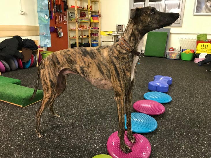 Hjari ist ein Magyar Agár und ein begeisterter Happy-Mix-Besucher! Er liebt besonders die verschiedenen Koordinations- und Balanceübungen und ist jeweils kaum zu bremsen. Hjari zeigt ganz beachtliche Leistungen für seine Körpergrösse!