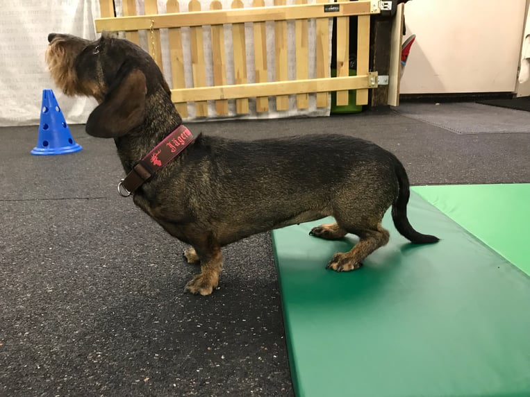 Die süsse Dackeldame Bagi besucht mit Frauchen den Fit-Mix Kurs.