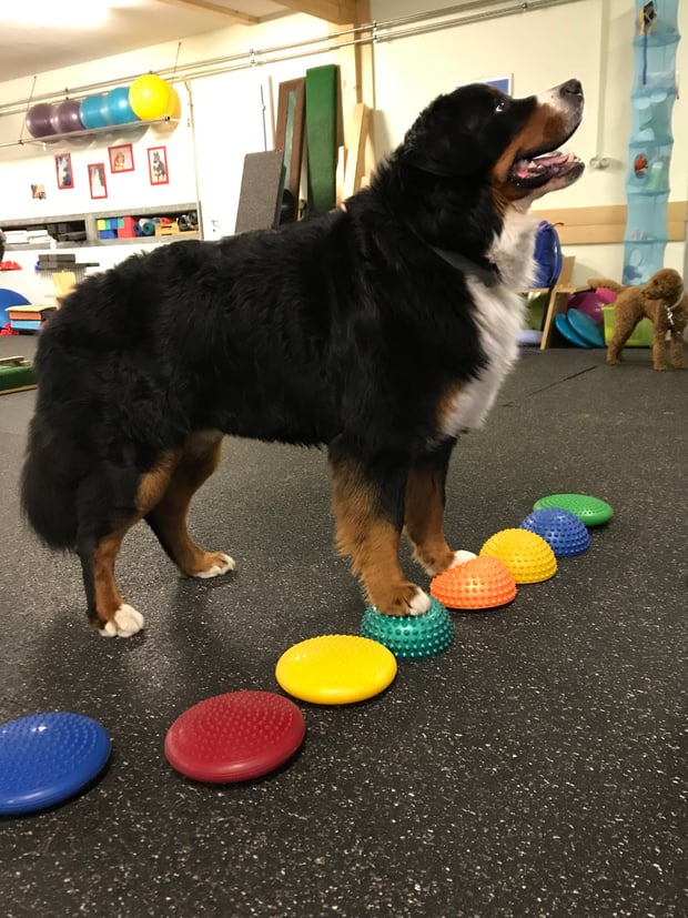 Dank den verschiedenen Übungen im Fit-Mix Kurs, welche die Koordination, Propriozeption und die Balance des Hundes fördern sowie zusätzlich mit Physio und Osteo, ist seine Beweglichkeit viel besser geworden.
