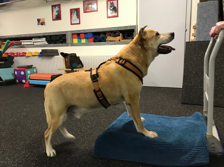 Lucy macht da sehr engagiert mit und hat Spass an den verschiedenen Übungen. Sie wird auch regelmässig mit Physio unterstützt.