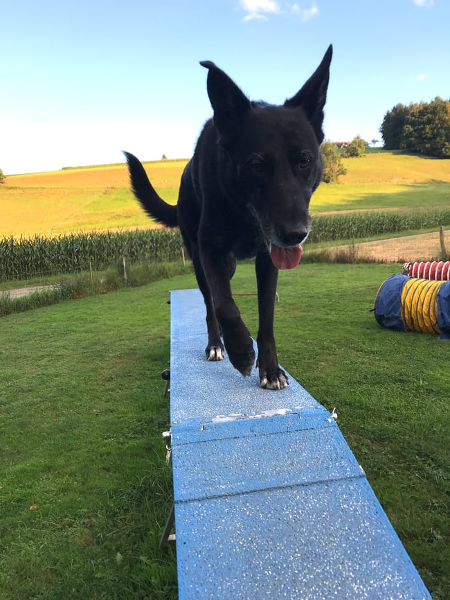 Auch dieses Foto ist vom vergangenen Jahr und zeigt die Bordercollie-Hündin bei einer Koordinationsübung.