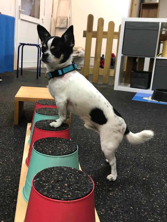 Natürlich werden die Übungen individuell an die Konstitution der jeweiligen Hunde angepasst.