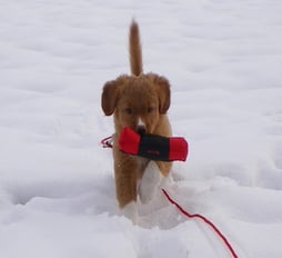 Hier bin ich zehn Wochen alt und übe schon mal das Apportieren unter erschwerten Bedingungen.