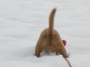 Dafür helfe ich meinem Frauchen immer bei der Hausarbeit. Wenn sie eine Decke oder ein Tuch ausschütteln will, packe ich es sofort und helfe schütteln. Auch mit dem Wischlappen kann ich sehr gut umgehen und packe ihn dann gleich, verstehe nur nicht, warum ich den Rasen nicht auch aufwischen darf. Beim Spazieren ist mir Frauchen einfach zu langsam und ich habe das Gefühl, dass ich sie immer und immer ziehen muss. Im Moment entgeht mir kein Mauseloch; leider hat Frauchen nicht so Freude daran wie ich.