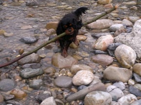 Hallo, mein Name ist Savannah, bin ein Cavalier King Charles Spaniel und am 19.12.2006 geboren. Nachdem ich meinem Herrchen (er war von der Hundeidee meines Frauchens nicht so begeistert) gleich beim ersten Treffen das Ohrläppchen abgeleckt habe, war der Bann gebrochen und ich durfte mit 13 Wochen zu ihnen nach Roggwil. Zwar wurde ich dort gleich von drei Kätzinnen und einem Kater empfangen, aber die grosse Freundschaft wurde es nie, jedoch akzeptieren wir einander.