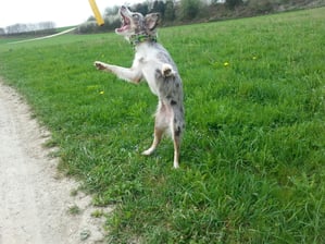 Eigentlich bin ich für (fast) alles zu haben. Hauptsache, es gibt etwas Leckeres zu Essen oder macht Spass. Am liebsten gleich beides. Deshalb gehe ich auch sehr gerne zu Sylvia in den Trick-Kurs! Dort lerne ich gaaaanz viele tolle Tricks und bin mit grosser Begeisterung dabei. Nach einer Stunde schlafe ich dann zu Hause gleich ein und träume ganz viel. Dabei renne ich auch gerne mal auf der Stelle und gebe lustige Laute von mir, meint Frauchen.