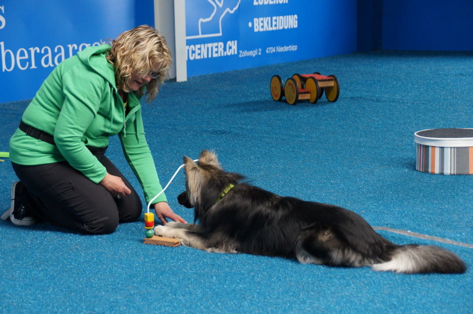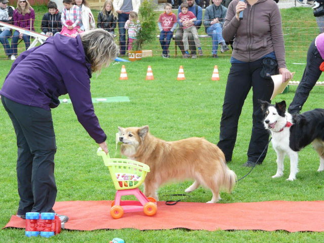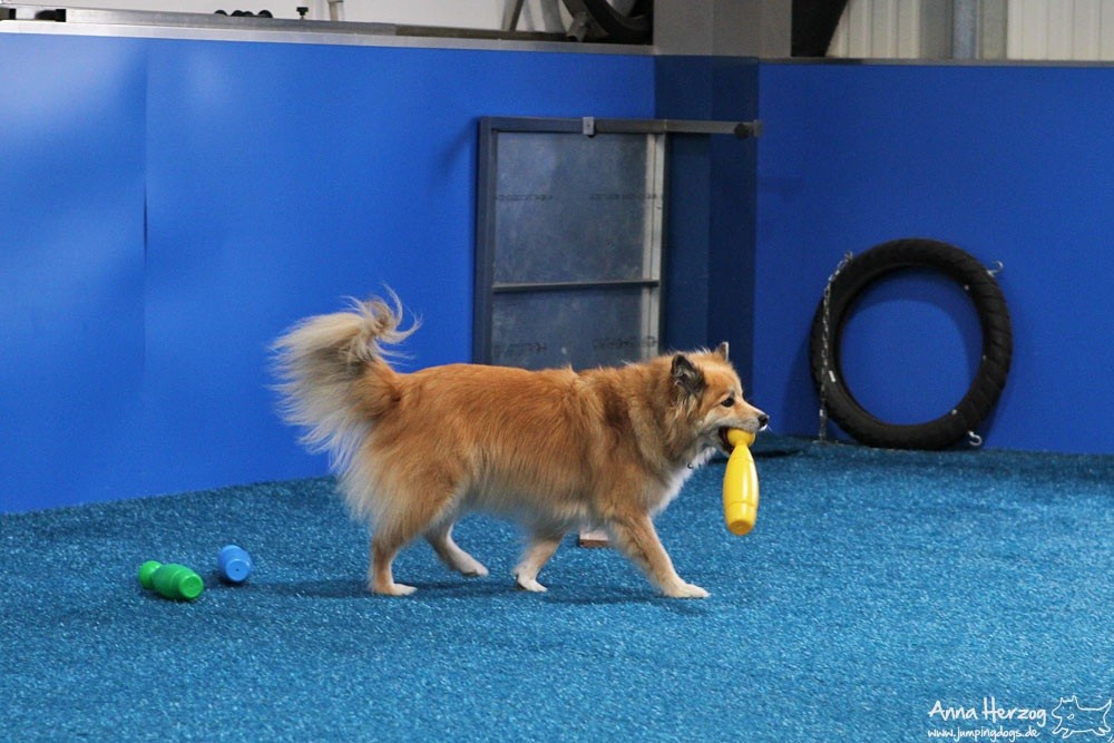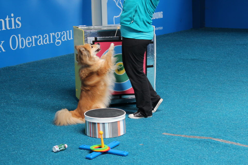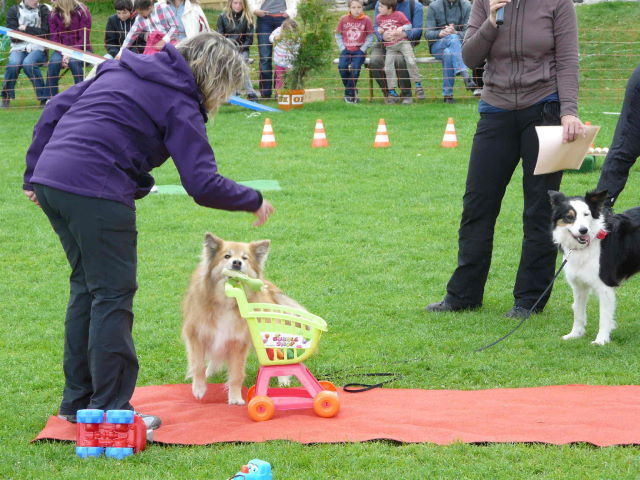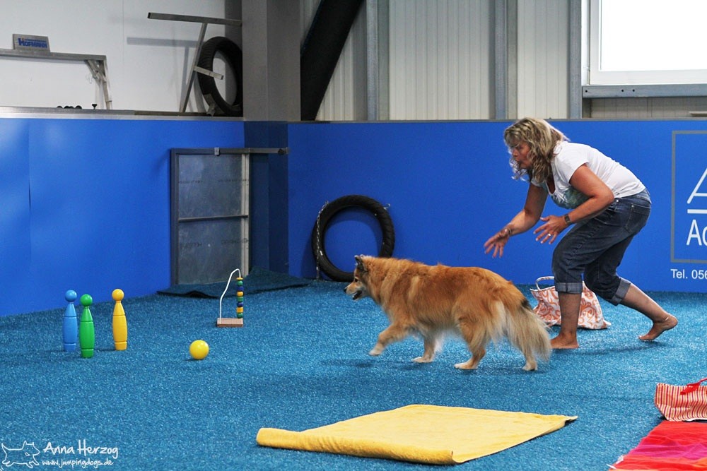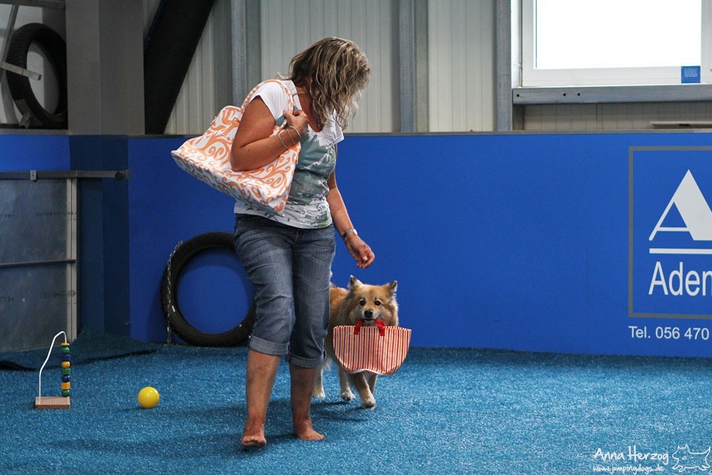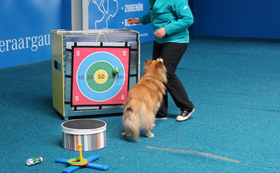 Spannend ist es auch mit Requisiten zu arbeiten. Da lernt der Hund z.B. kegeln, Dinge aufräumen, Socken abnehmen, Reissverschluss öffnen, lesen, sich zudecken etc. etc.