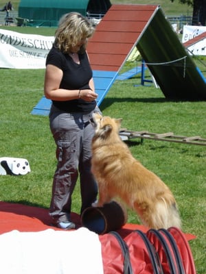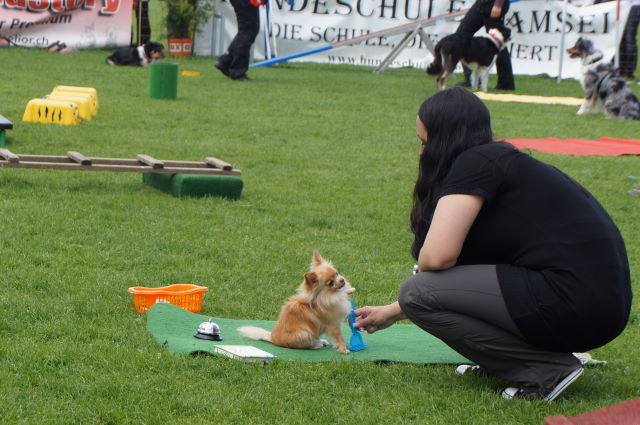 Mit Rilla bin ich am Morgen in der Fun-Klasse gestartet. Es war das 1. Mal für sie und sie hat bei allen Tricks ganz toll mitgemacht, ich bin richtig stolz!!