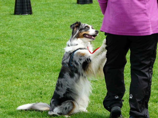 Beim Trickdogging lernt man dem Hund einzelne Tricks, z.B. Hase, verbeugen, sich schämen, winken und vieles mehr.