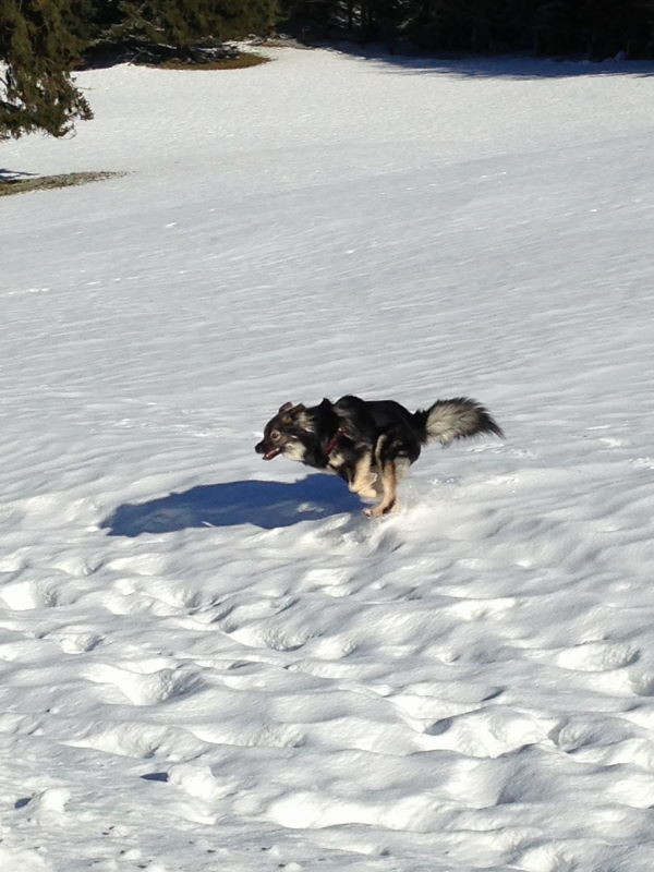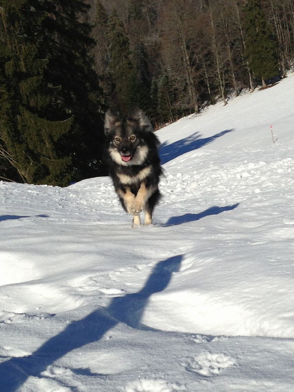 Ein bisschen fahren ging, sobald ich aber seitlich des Bobs war, wollte Tuvra aufstehen.